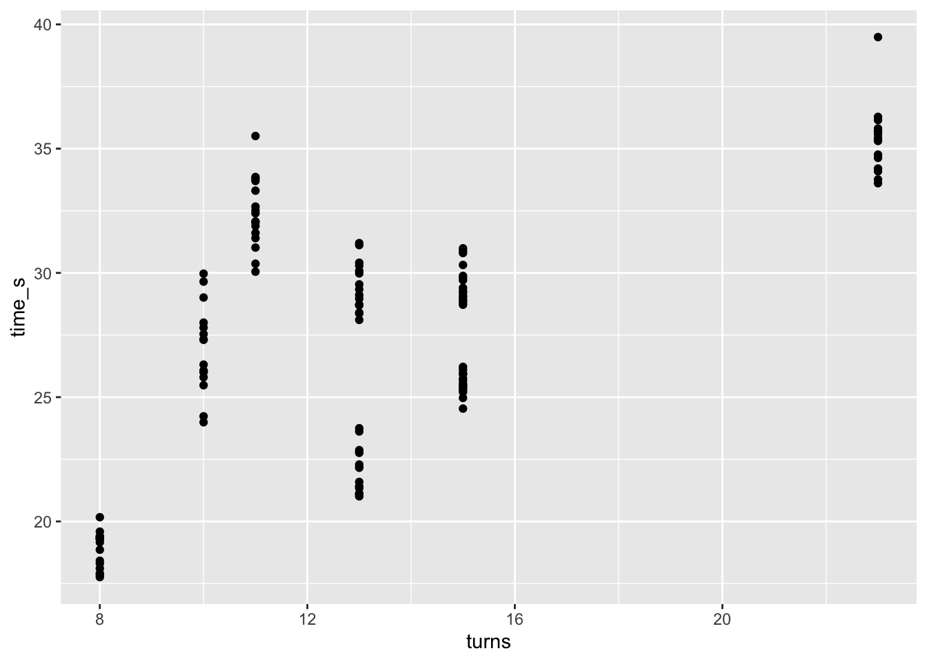 I started with the question: what is the relationship between the number of turns on a track and a marble’s lap time? And I had two thoughts about how to approach this: