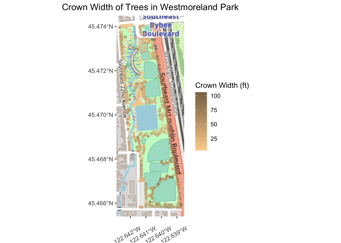 ## Reading layer `fd3ad191-4bf0-4577-b6ec-724baeb619792020413-1-a3eocm.isio' from data source `/Users/ericcramer/Library/CloudStorage/OneDrive-Personal/Desktop/OHSU/Graduate/Classes/BMI 625 Data Visualization/Portfolio/portfolio/content/post/2023-05-31-bmi-625-maps-lab-8/data/Parks_Tree_Inventory-shp'